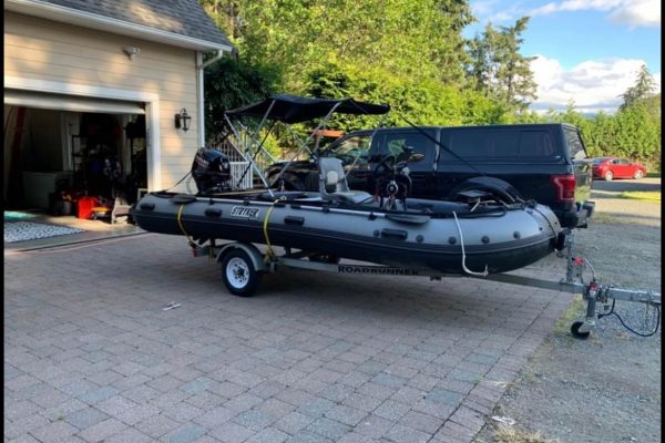 Read moreIntroducing the Stryker PRO 500 inflatable boat (the largest roll up in our line to date! This inflatable boat comes with the added protection of 1.8mm wrapped with our Stryker Shield® under the entire bottom of the boat. Since it’s launch in 2018, it has quickly become one of the most popular boats we have sold. We add a 20” transom for the ability to add a JET outboard for extreme shallow water use. Please note: this model requires a 20” prop motor. This is the perfect inflatable boat for a large group of adventure seekers paired with a 30-50HP long shaft(prop) outboard or a 35-40HP JET. This inflatable boat is commonly paired with a Stryker Boat Trailer and various console options.