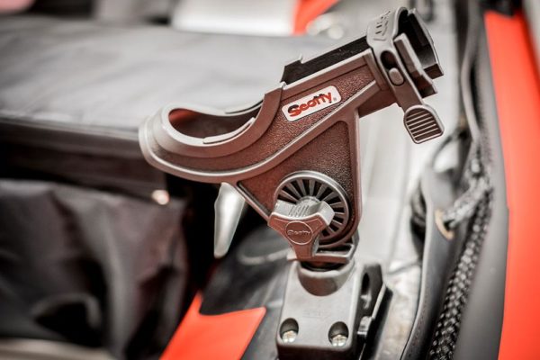 • As with all Scotty post mount rod holders, the Bait Caster/ Spinning rod holders are fully adjustable up and down and have 360° horizontal rotation.